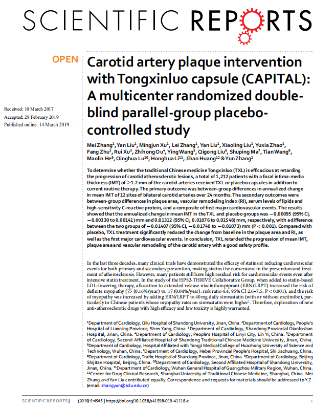 结论表明通心络能延缓平均内中膜厚度、斑块面积和颈动脉血管重构的进展,进而延缓主要心血管事件首发时间,疗效显著且具有良好的安全性。