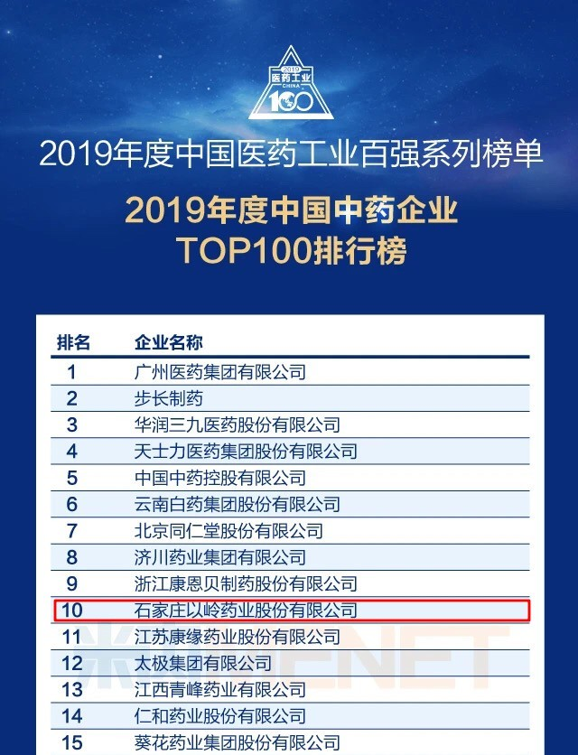 7月22日,备受瞩目的中国医药工业百强系列榜单新鲜出炉,以岭药业荣登“2019年度中国中药企业TOP100排行榜”第10位。该榜单是根据入围企业的创新驱动力和专业推广力两项指标综合评定而成。中国医药工业百强系列榜单自2006年创办以来已经连续举办十多年,成为国内最受关注、最具权威的医药排行榜之一。