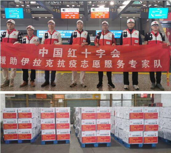 2020年3月7日下午,应伊拉克红新月会请求,中国红十字会总会派遣志愿专家团队一行7人从广州飞赴巴格达,携带核酸检测试剂盒等医疗用品和设备和以岭药业捐赠的价值177.6万元的连花清瘟胶囊等人道救援物资,支援伊拉克新冠肺炎疫情防控工作。
