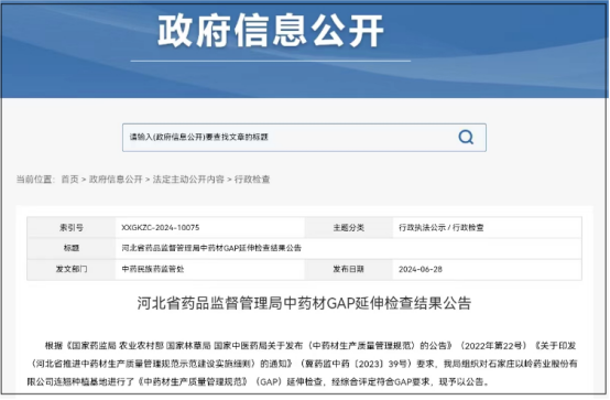 日前,河北省药品监督管理局发布《河北省药品监督管理局中药材GAP延伸检查结果公告》称,河北省药品监督管理局组织对石家庄以岭药业股份有限公司连翘种植基地进行了《中药材生产质量管理规范》(GAP)延伸检查,经综合评定符合GAP要求。