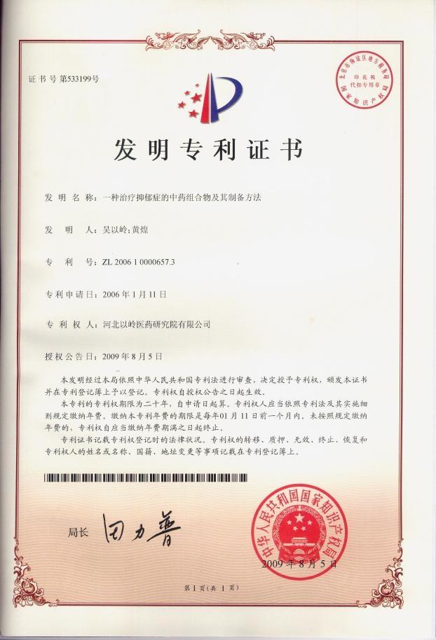 Ⅲ期临床试验有效性结果:基于FAS集,用药6周后,主要疗效指标HAMD-17评分较基线下降值:试验组为9.85分、安慰剂组为4.55分、盐酸氟西汀片组为9.65分,试验组与安慰剂组差值及95% CI为5.30(4.27,6.33),试验组疗效优于安慰剂组;试验组与盐酸氟西汀片组差值及95% CI为0.20(-0.83,1.23),非劣效界值为2,试验组疗效非劣于盐酸氟西汀片组。次要疗效指标中,精神抑郁、心绪不宁、胸脘痞闷、食欲不振、善太息(易叹气)、失眠多梦、头晕耳鸣、咽堵(咽中如有异物)、口苦咽干、大便秘结等中医证候单项症状评分以及HAMA评分,试验组有改善。